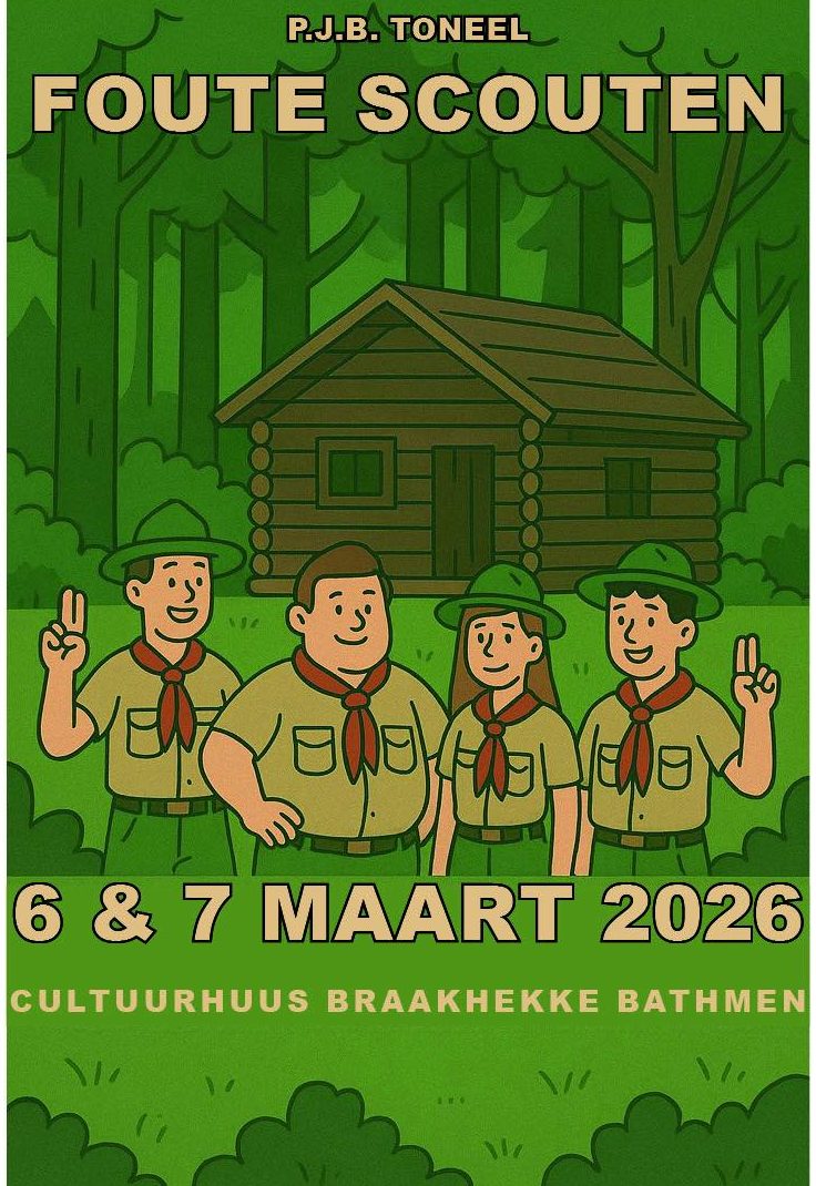 6 & 7 maart speelt P.J.B. Toneel ‘foute scouten’ van Mart Moors in Braakhekke.